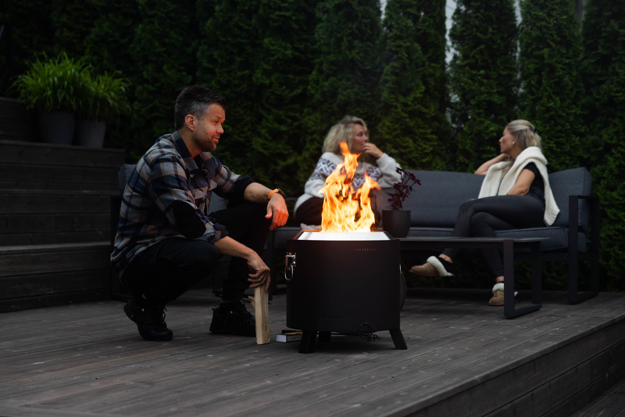 Falkeberg Firepit er en rentbrennede bålpanne som sørger for mer flammer og mindre røyk. Du vil få et nærmest røykfritt bål og kan vinke farvel til sviende øyne og at alle klærne lukter bål i ukesvis. Men husk – bruk tørr ved!